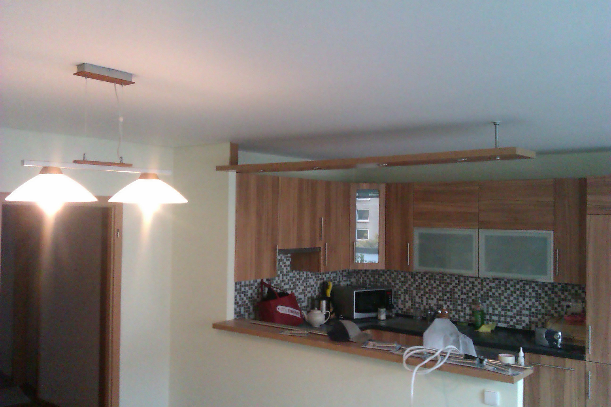 Montáž napínaného stropu do obýváku a kuchyně.