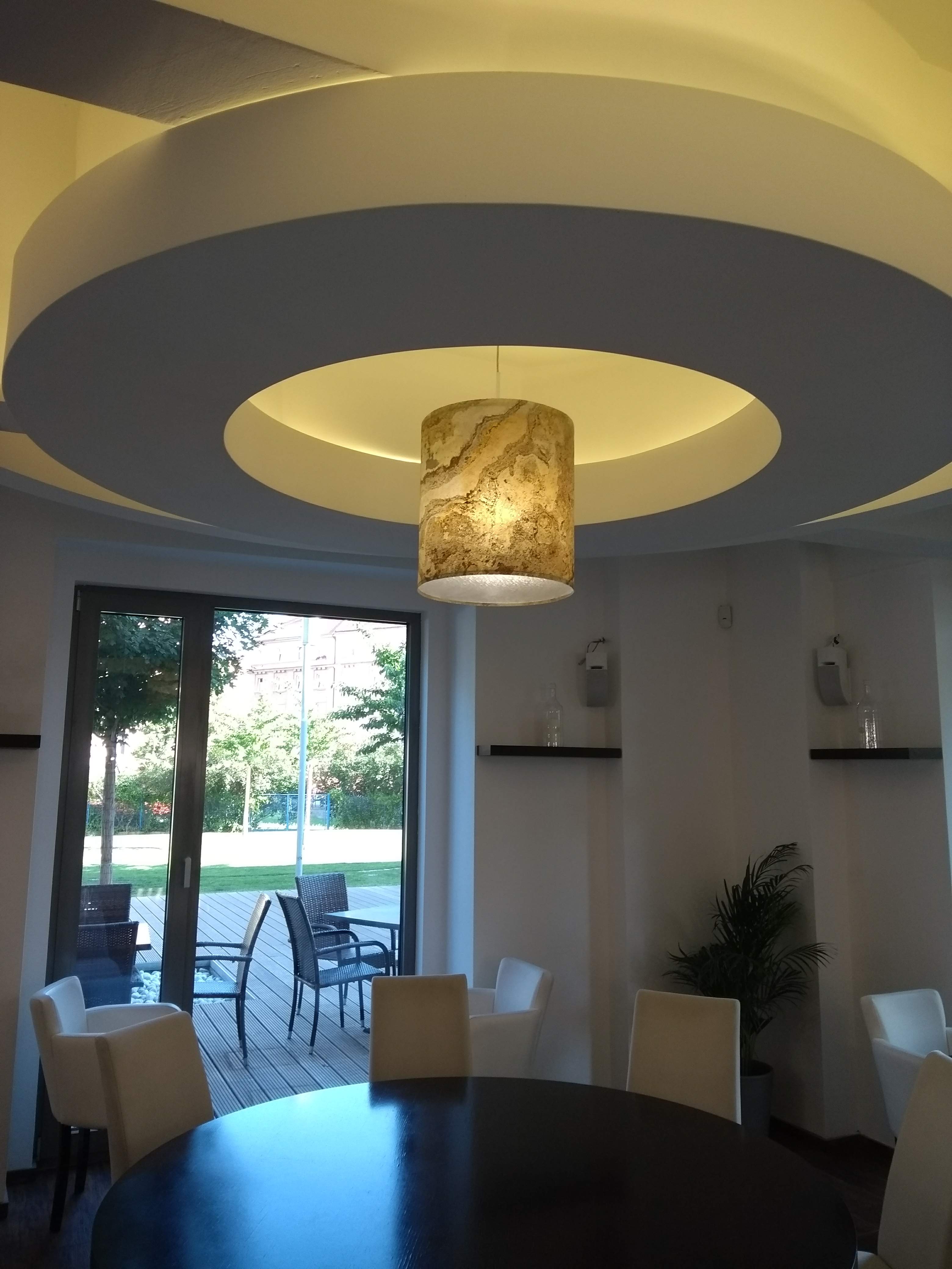 Svítidlo z translucentní kamenné dýhy